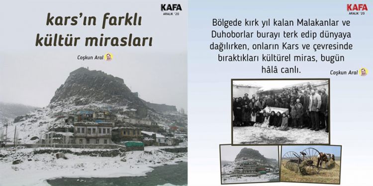 Gazeteci Coşkun Aral, aylık kültür, sanat ve edebiyat dergisi Kafa Dergisi’nin Aralık ayı sayısında Kars ve çevresinde 40 yıl kalan Malakanları ve Duhoborları kaleme alarak, bölgede kırk yıl kalan Malakanlar ve Duhoborlar burayı terk edip dünyaya dağılırken, onların Kars ve çevresinde bıraktıkları kültürel mirasın bugün hala canlı olduğunu söyledi.