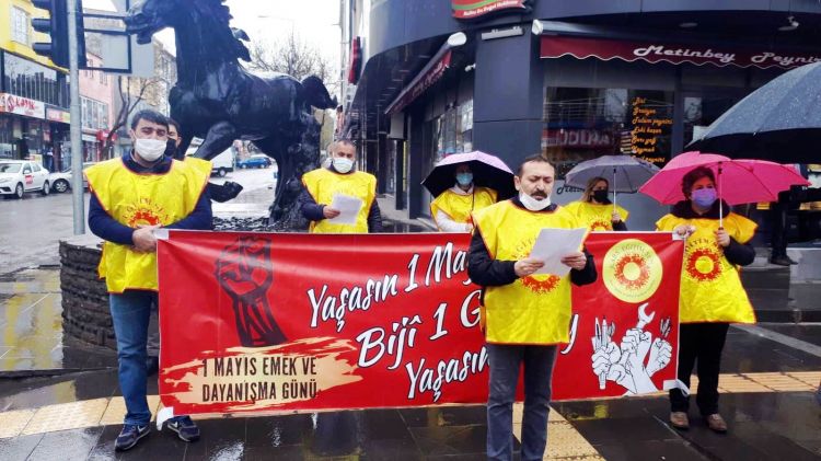 Faikbey Caddesi üzerindeki At Heykeli önünde gerçekleştirilen basın açıklamasında; bugün Türkiye’nin dört bir yanında 1 Mayıs Birlik Mücadele ve Dayanışma Günü için yan yana olduklarını belirten üyeller, yasaklara ve baskılara rağmen umudu büyütüklerini dile getirdiler.