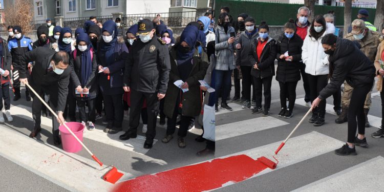 Uygulama kapsamında Kars Valisi ve Belediye Başkan Vekili Türker Öksüz, Vali Yardımcısı Mehmet Zahid Doğu, İl Emniyet Müdürü Yavuz Sağdıç, İl Jandarma Komutan Vekili Albay Fuat Güney, Milli Eğitim Müdürü Aydın Acay, emniyet ve jandarma trafik ekipleri ile öğrenciler yaya geçitlerinde kırmızı çizgi çizdiler.