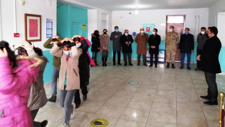 Proje kapsamında Arpaçay ilçesinde bulanan 3 Kasım Ortaokulunda tatbikat düzenlendi. Yapılan tatbikata; İlçe Kaymakamı Sayın Mustafa Uğur Özerden, Belediye Başkanı Erçetin Altay, kurum amirleri, öğretmenler ve öğrenciler katıldı.